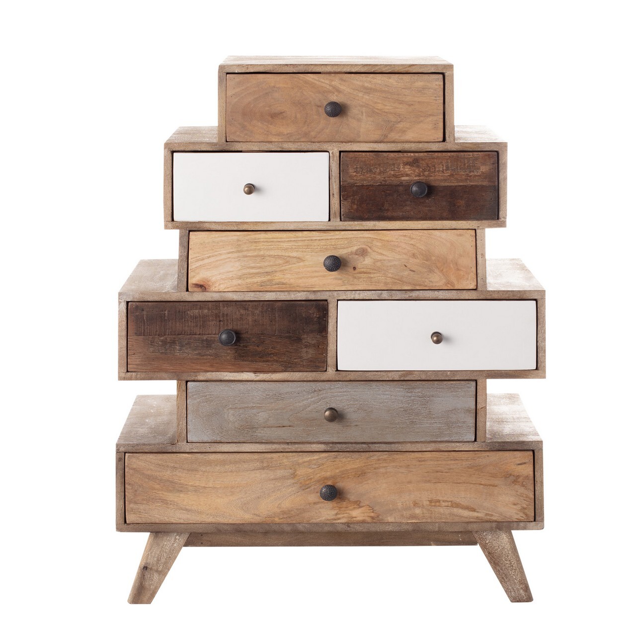 Vďaka ôsmim zásuvkám poskytuje komoda z mangového dreva dostatok úložného priestoru, od oblečenia až po dokumenty alebo drobné predmety. Pevná konštrukcia zaručuje odolnosť a stabilitu, vďaka čomu je tento kus nábytku nielen estetickým doplnkom, ale aj praktickým riešením na organizáciu priestoru.