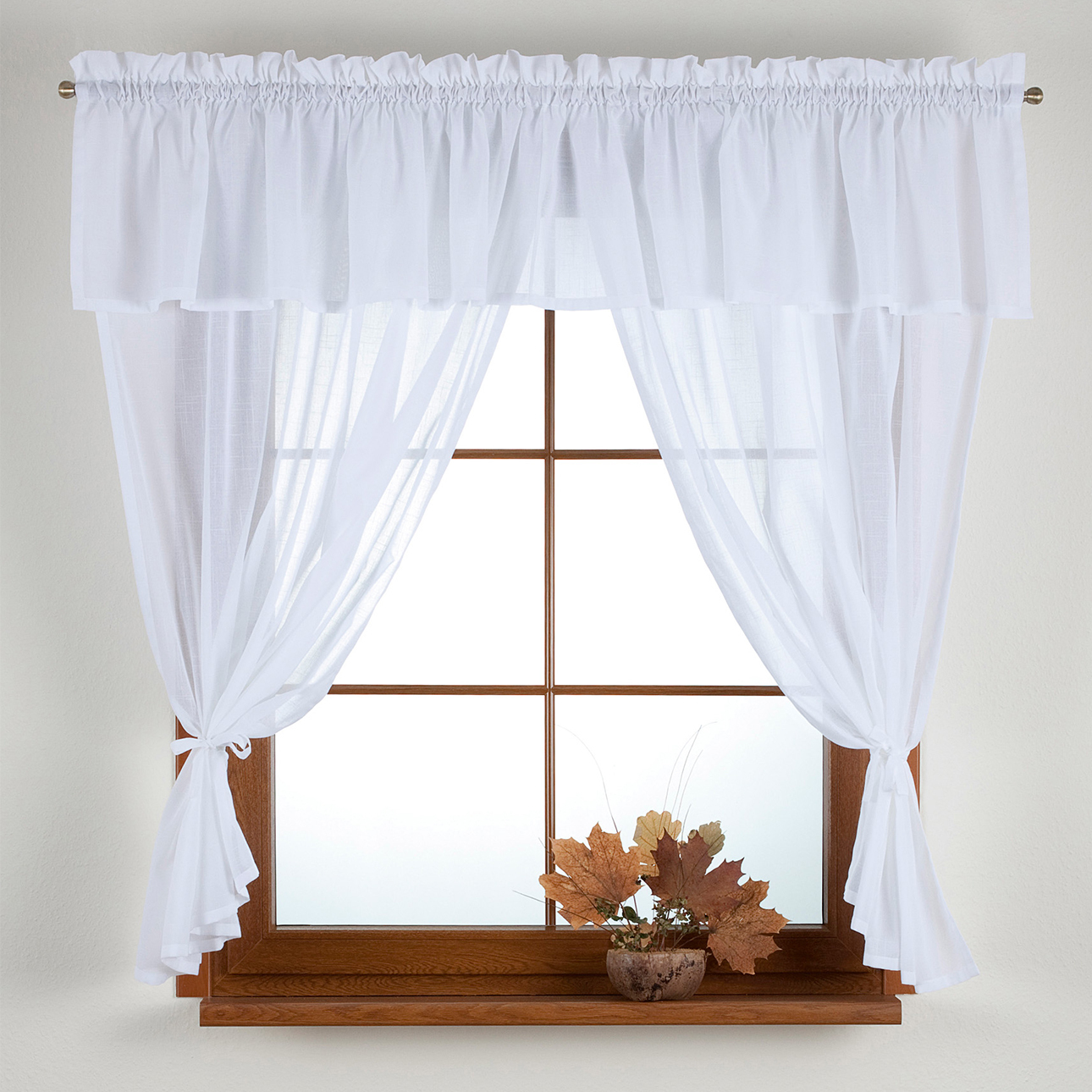 Romantická dekorácia na kuchynské okno z jemnej tkaniny z kolekcie Romantica, ktorá nezatemňuje interiér.