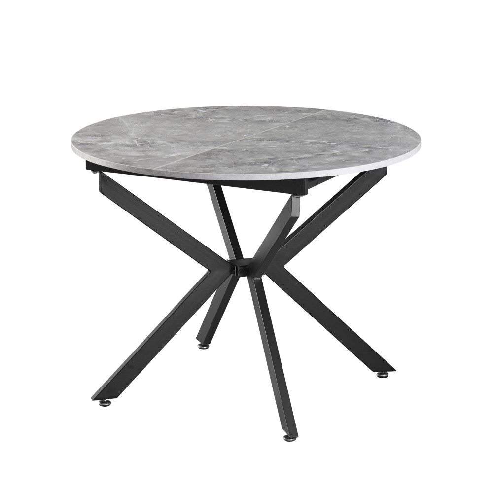 Rozkladací jedálenský stôl Abero Typ 1 v elegantnom prevedení betón a čierna je ideálnym riešením pre moderné interiéry. Tento stôl, vyrobený z kvalitného aglomerovaného materiálu MDF a kovu, ponúka nielen štýlový vzhľad, ale aj praktickosť vďaka svojej rozkladacej funkcii.