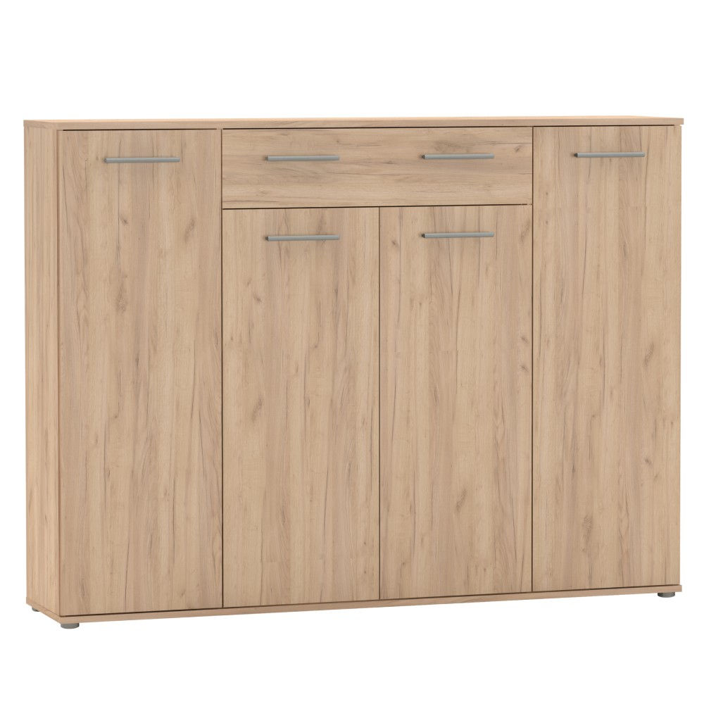 Botník ALEXIS je vyrobený z odolnej laminovanej DTD s hrúbkou 1,6 cm v elegantnej farbe dub artisan. Jeho rozmery sú (ŠxHxV): 160x35x120,4 cm, čo z neho robí praktické riešenie pre predsieň či chodbu. Skrinka je štvordverová a vo vnútri sa nachádzajú police…