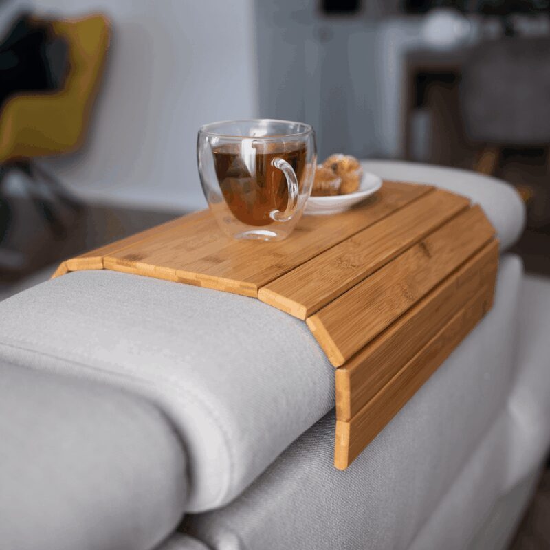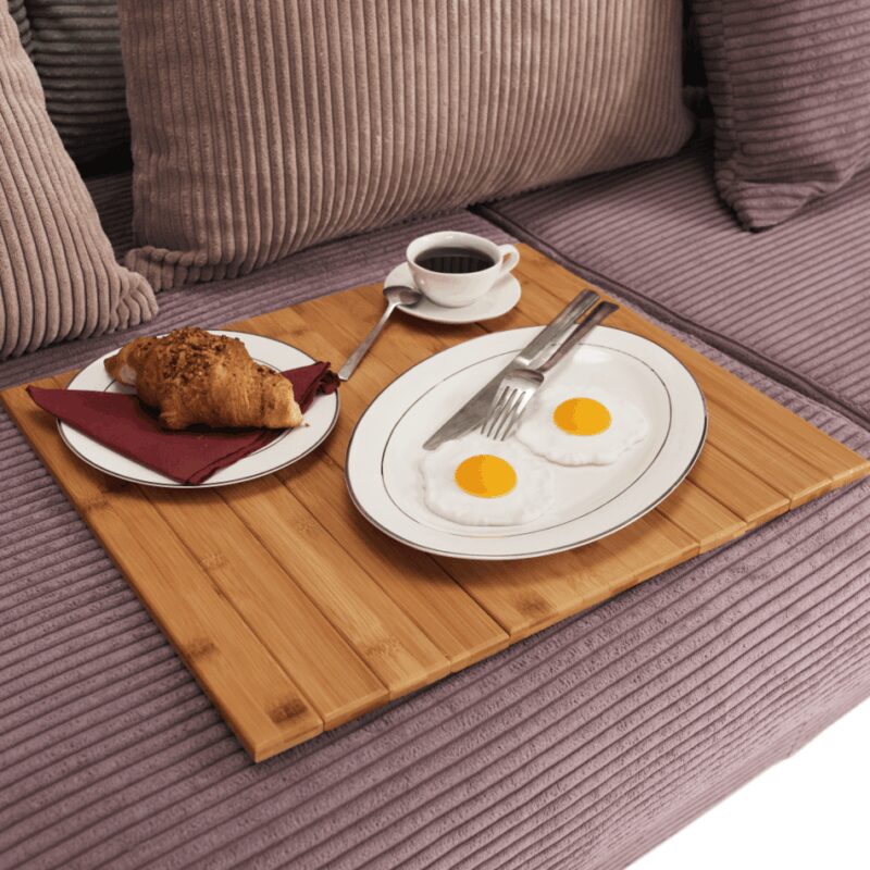 Ak pri relaxovaní na vašom milovanom gauči hľadáte neustále niečo, kam by ste si mohli odložiť pohár alebo tanierik, ale váš konferenčný stolík je ďaleko a nedosiahnete naň, tak táto podložka je priamo pre vás! Jednoduchá manipulácia je dokonalým riešením pre váš nerušený odpočinok. Je vyrobená z lakovaného bambusu a je pevná a dostatočne ohybná zároveň.