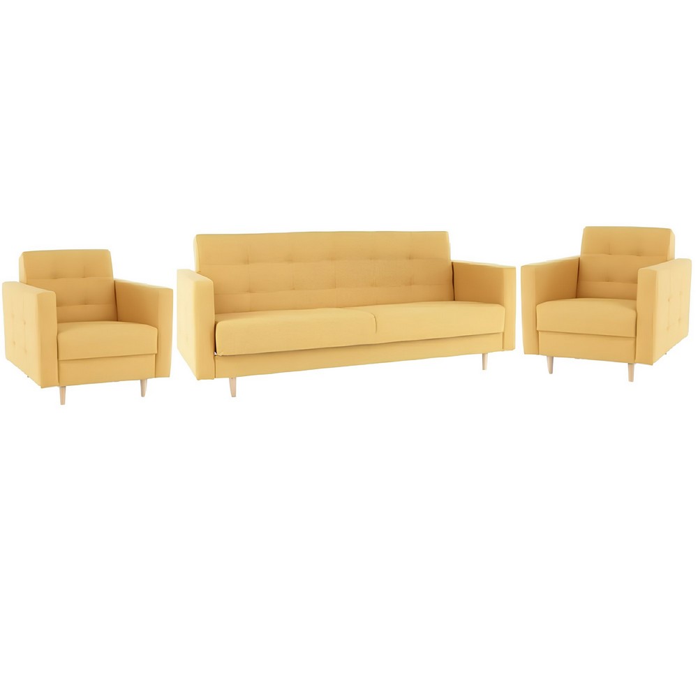 KONDELA Amedia 3R+1+1 rozkladacia sedacia súprava horčicová