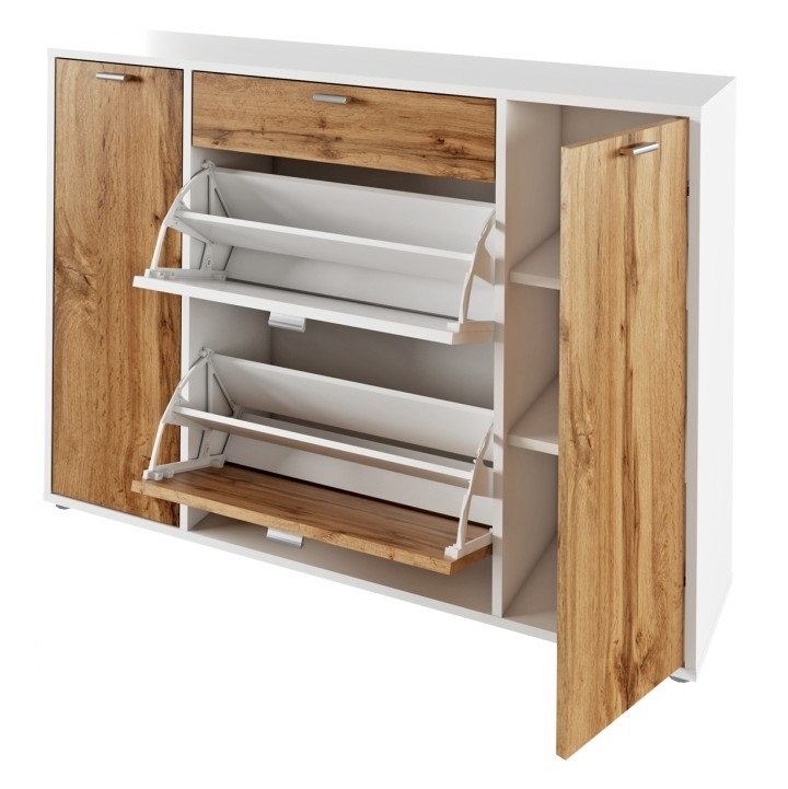 KONDELA Anabela botník (skrinka na topánky) biela / dub wotan
