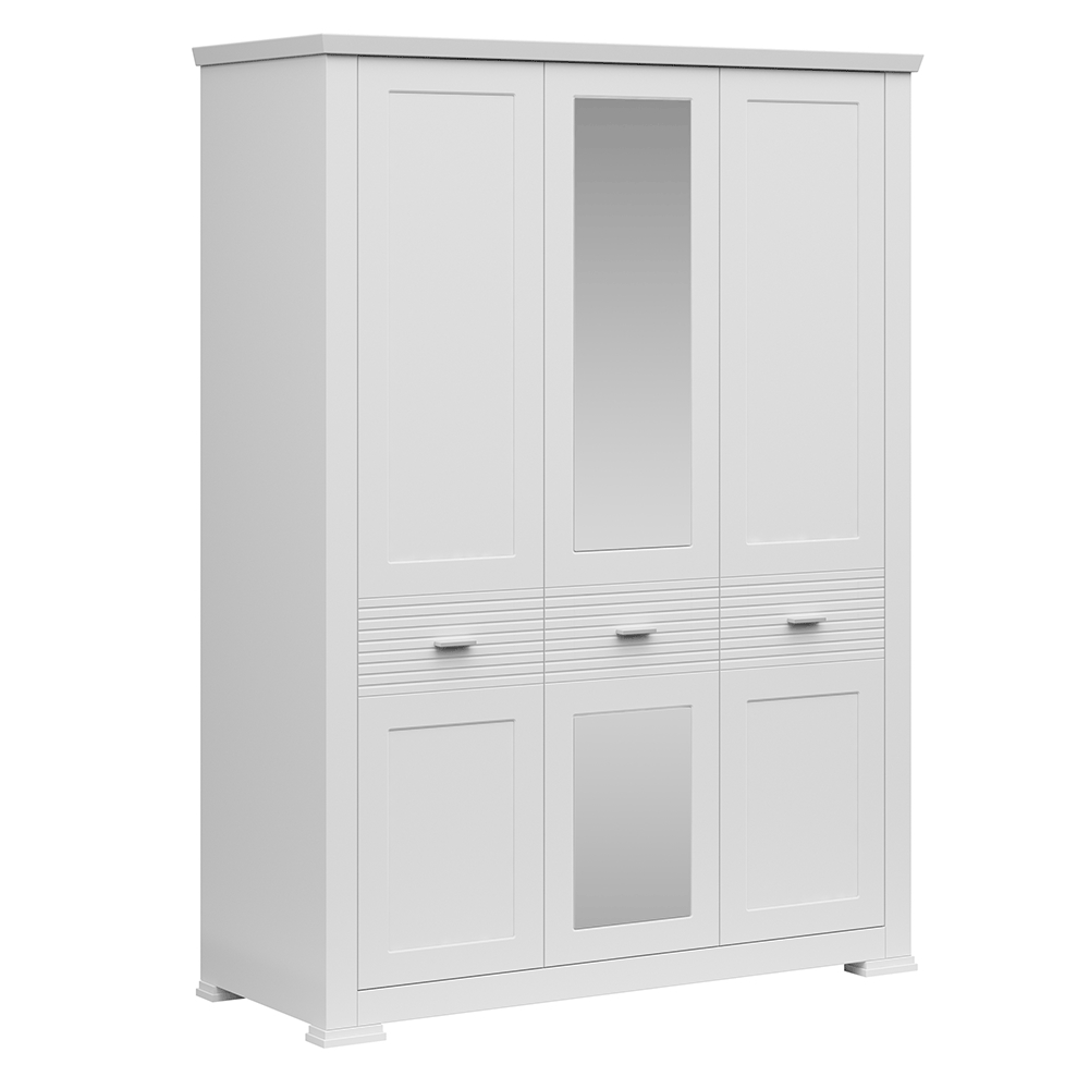 Domovská stránka » Katalóg » KONDELA Aryan 3D trojdverová šatníková skriňa so zrkadlom biela