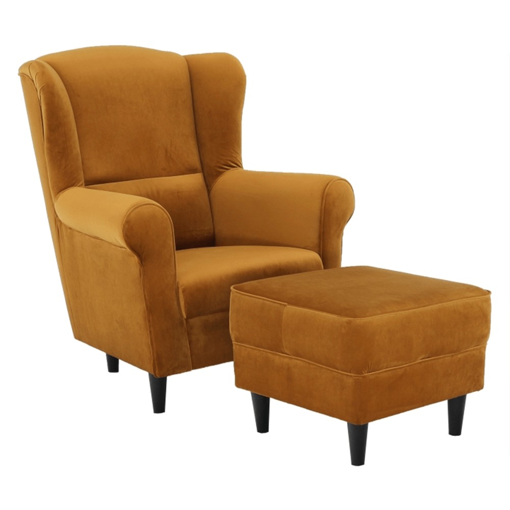 Domovská stránka » Katalóg » KONDELA Astrid kreslo (ušiak) s taburetkou horčicová