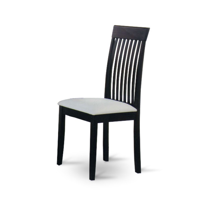 Klasická jedálenská stolička ASTRO je drevená stolička vyrobená z prírodného masívu vo farbe wenge. Sedák je čalúnený bielou ekokožou. Výška sedu je 43 cm.