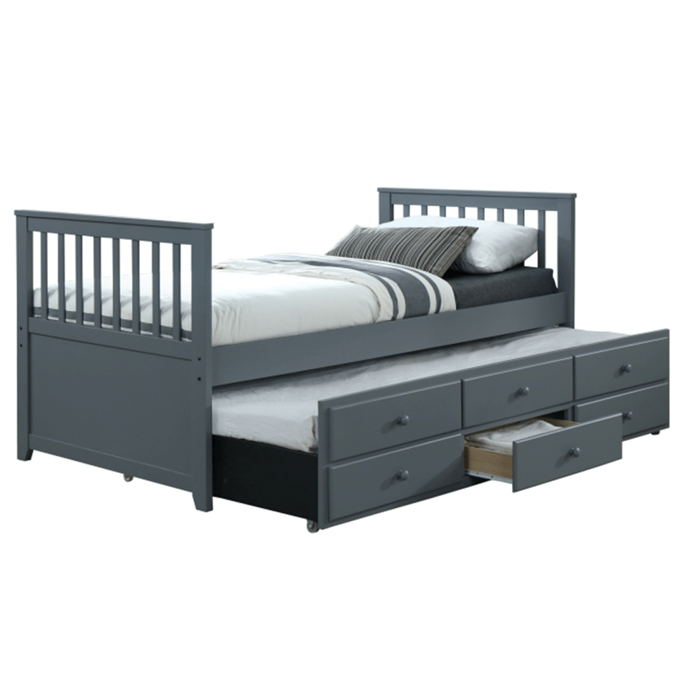 Krásavec v nadčasovom modernom dizajne, to je posteľ s prístelkou AUSTIN NEW 90. Určite oceníte kompromisné riešenie, ktoré vytvorí dostatočný priestor pre dospelých aj pre deti. Posteľ s prístelkou a úložným priestorom je z masívneho dreva a MDF (drevovláknitá doska) v štýlovom sivom farebnom…