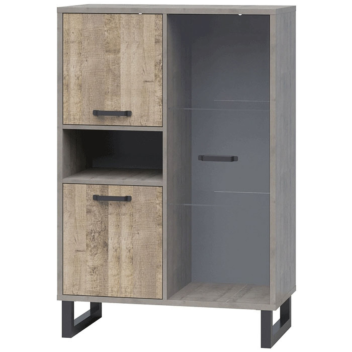 KONDELA Baria 2D1W trojdverová vitrína dub pieskový / sivá