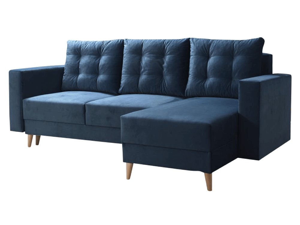 Domovská stránka » Katalóg » KONDELA Bleky Roh P rohová sedačka s rozkladom a úložným priestorom modrá / buk