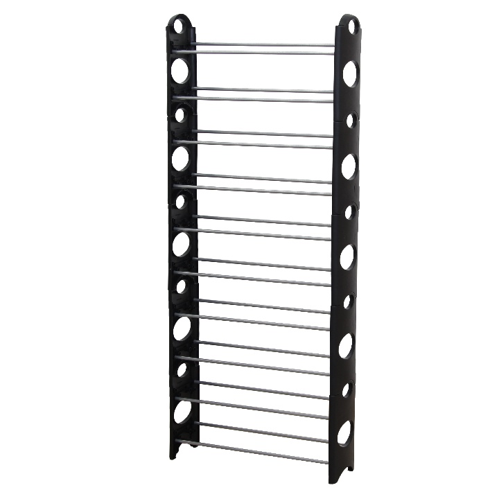 Moderný botník BOTIS TYP 5 je vysoký 10-radový botník vhodný pre 30 párov topánok. Botník bude praktickým doplnkom vo Vašej predsieni. Materiál použitý na výrobu je kov v kombinácii s plastom vo farebnom prevedení čierna / sivá. Maximálna nosnosť botníka je 20 kg.