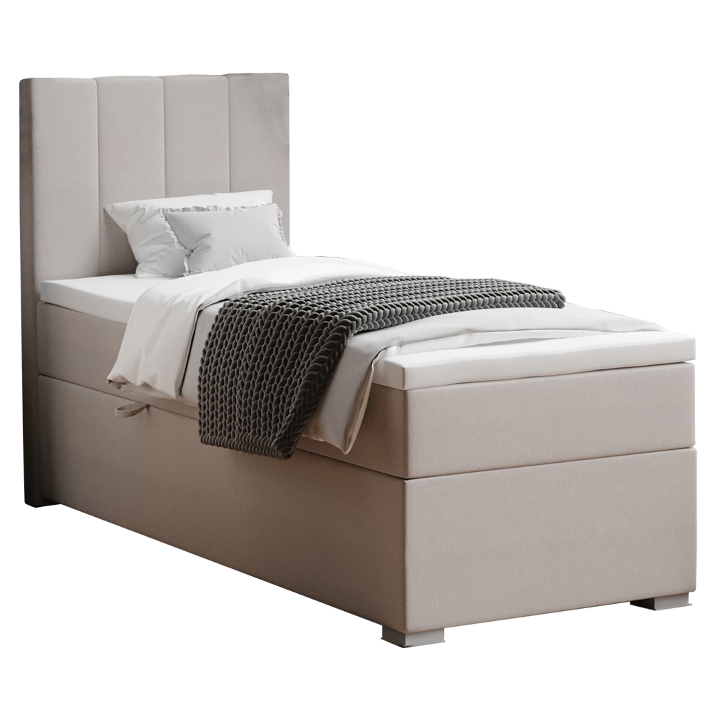Domovská stránka » Katalóg » KONDELA Bred 80 L čalúnená jednolôžková posteľ s matracom sivohnedá (taupe)