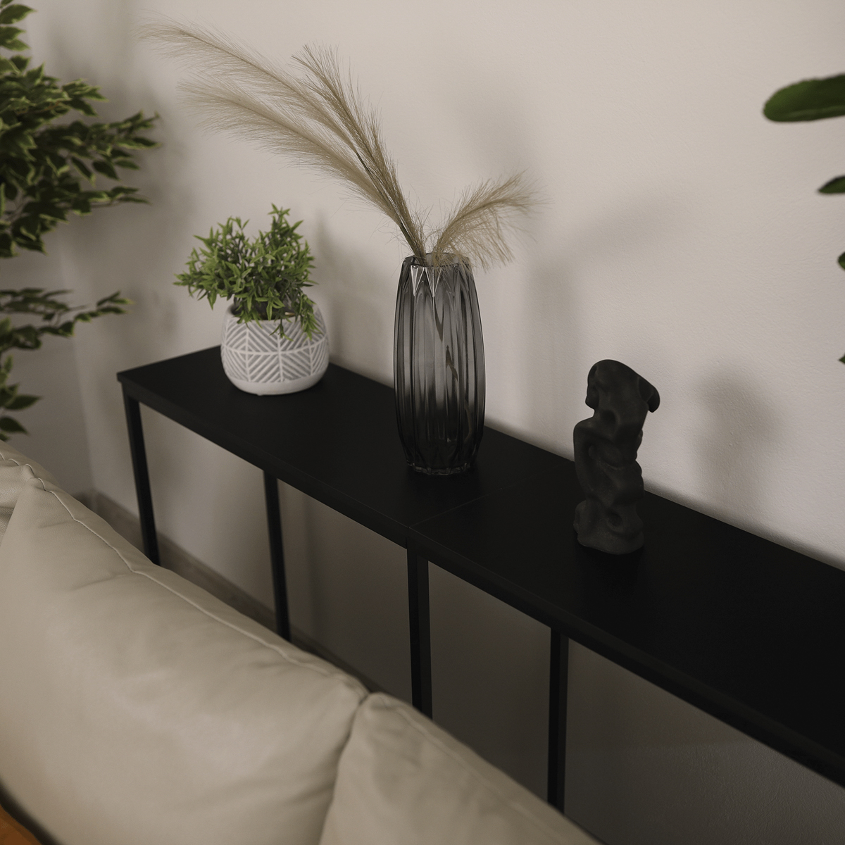 Konzolový stolík Busta je moderným a praktickým doplnkom do každého interiéru. S jeho tmavosivou, grafitovou a čiernou farbou prinesie do vášho domova eleganciu a štýl. Tento stolík je ideálny pre celoročné využitie a jeho jednoduchá montáž umožňuje rýchle a efektívne zloženie.