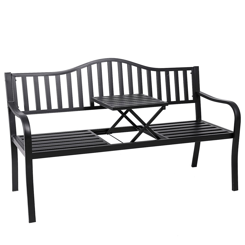 KONDELA Dagno záhradná lavička so stolíkom čierna