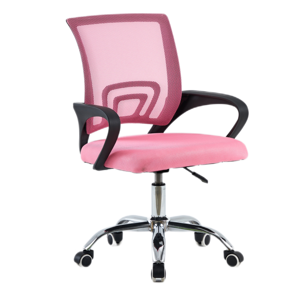 Kancelárska stolička s podrúčkami Dex 4 New – ružová / chróm; Rozmery (ŠxHxV): 57x55x86 cm; Materiál: sieťovina / plast / kov.