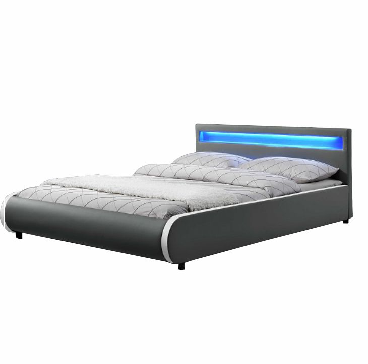Domovská stránka » Katalóg » KONDELA Dulcea 160 čalúnená manželská posteľ s roštom a osvetlením sivá