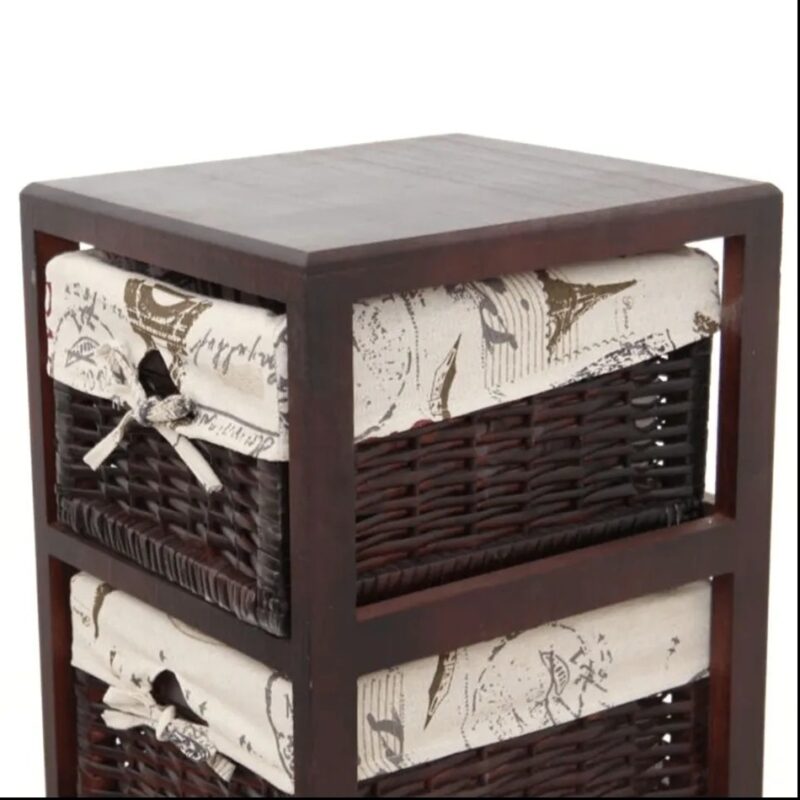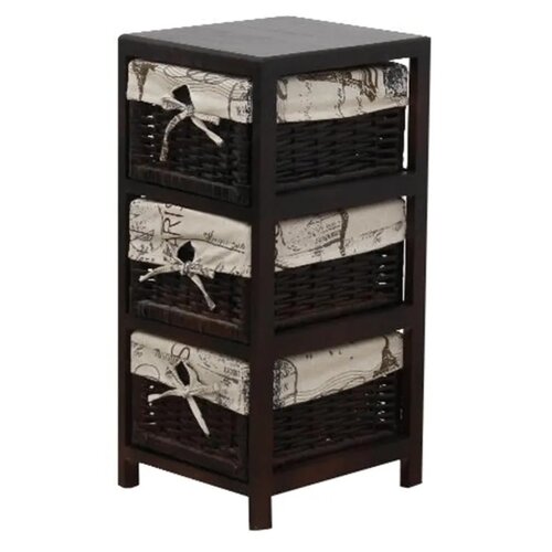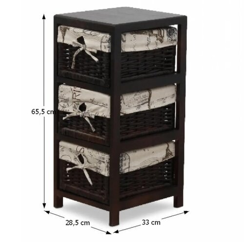 Krásna komoda v romantickom štýle, ktorá je ideálna na skladovanie a triedenie rôznych predmetov. Je krásnym doplnkom pre vašu predsieň, chodbu, či spálňu. Pevný rám s 3 prútenými košíkmi. Materiál: drevo, prútie, látková výstelka košíkov.