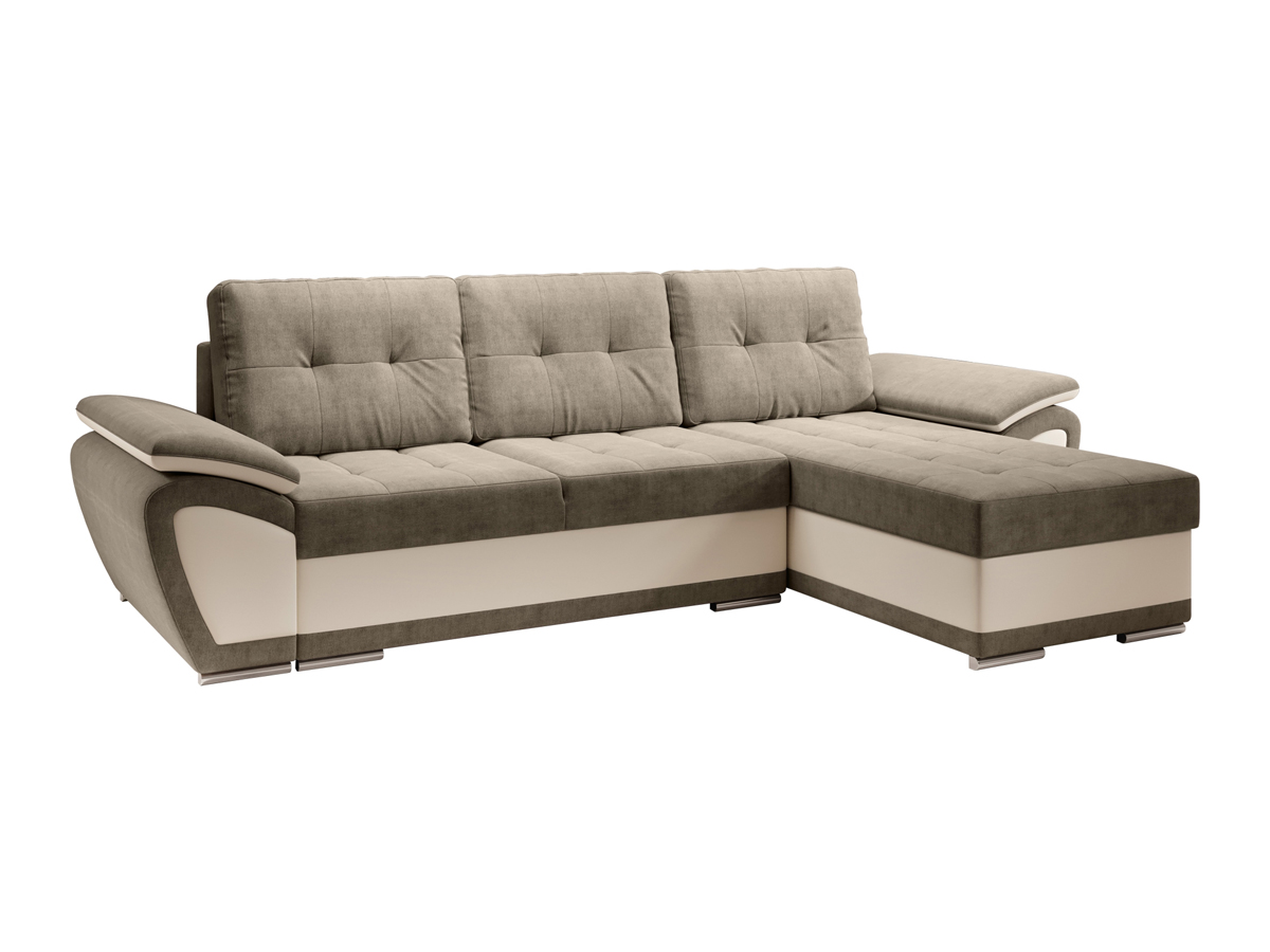 Rohová sedačka s rozkladom a úložným priestorom Enif Roh P v elegantnej béžovej a svetlohnedej farbe je ideálnym riešením pre moderné interiéry. Táto sedačka od značky KONDELA ponúka nielen štýlový vzhľad, ale aj praktické funkcie, ktoré ocení každá domácnosť.