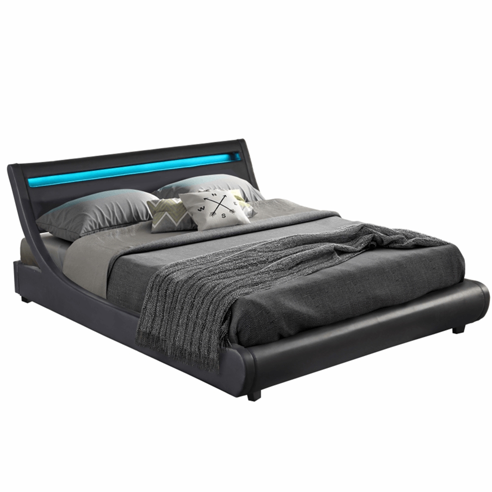 KONDELA Felina manželská posteľ s roštom a osvetlením čierna