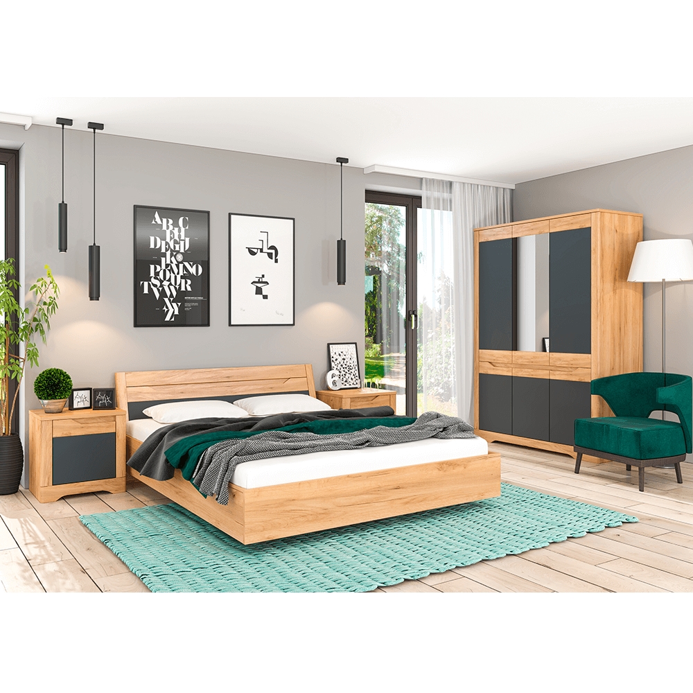 KONDELA Fidel spálňa dub craft zlatý / grafit sivá