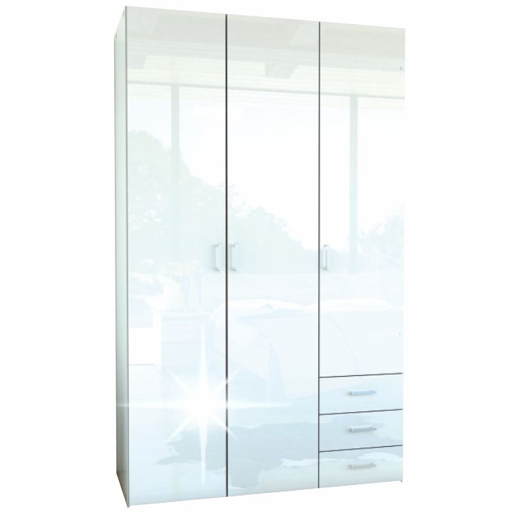 Skriňa GWEN 70427 je trojdverová šatníková skriňa s tromi zásuvkami. Za ľavými a strednými dverami sa nachádza vešiaková tyč s policou, pravá časť skrine je policová. Skriňa je vyrobená z fóliovanej DTD vo farebnom prevedení biely vysoký lesk, pričom na výber je aj v iných farebných vyhotoveniach.