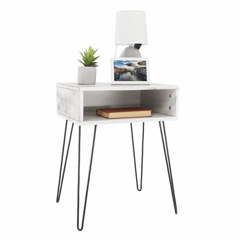 Tento multifunkčný stolík, ktorý zaujme svojim neobvyklým vzhľadom, je určený predovšetkým ako nočný stolík k posteli. Využitie ale nájde aj v predsieni či v obývačke. Jeho očarujúce spracovanie a jedinečný dizajn vám spríjemnia domácu atmosféru. Vyrobený je z lakovanej MDF v bielej farbe. Stabilitu zaisťujú kvalitné čierne kovové nohy.