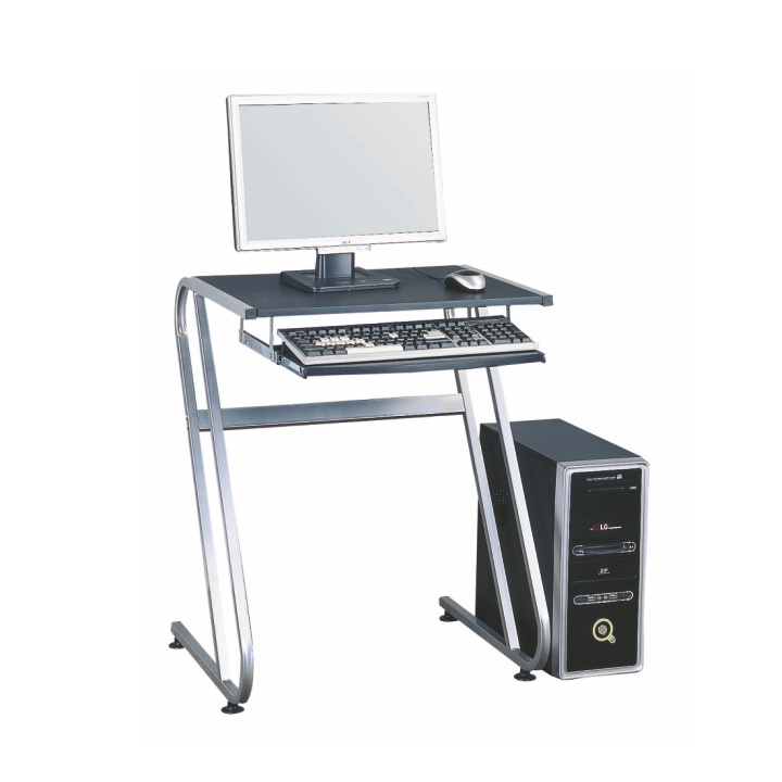Extravagantný PC stôl JOFRY je praktický stôl vhodný do menších detských izieb. Konštrukcia je vyrobená z kovu striebornej farby a horná doska z MDF čiernej farby. Pod hornou doskou je umiestnená výsuvná doska pre klávesnicu.