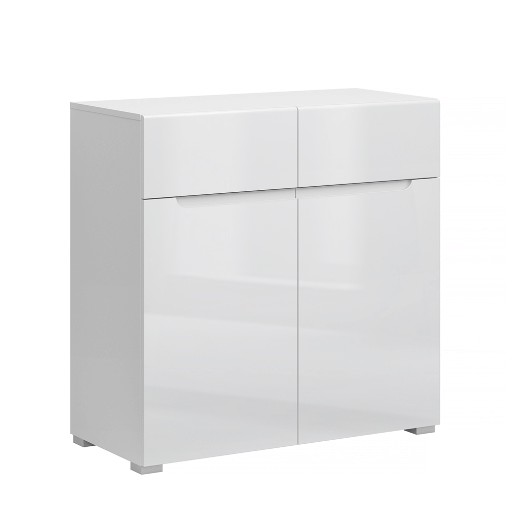 KONDELA Jolk 2D2S dvojdverová komoda so zásuvkami biela / biely lesk