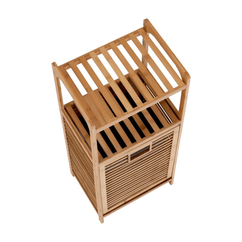 Pekný a praktický kôš vám pomôže udržať poriadok v domácnosti. Je vyrobený z bambusu a hodí sa nielen na špinavú bielizeň, ale aj na hračky, topánky a pod. Použitý bambusový materiál mu prepožičiava príjemný, prírodný vzhľad a kôš sa tak bude pekne vynímať aj v predsieni alebo v obývacej izbe. Vnútorný priestor koša je opatrený vyberateľným textilným vakom, je možné ho čistiť vlhkou handričkou. Dodávané v monte.