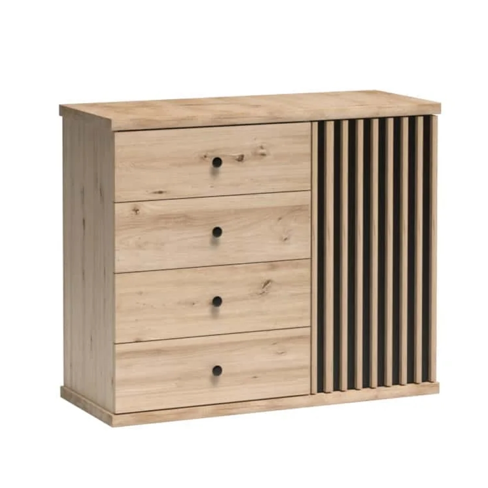 Jednodverová komoda so zásuvkami Koli C-5 v elegantnom prevedení dub artisan a čierna je ideálnym riešením pre tých, ktorí hľadajú praktický a moderný nábytok do interiéru. Táto komoda ponúka dostatok úložného priestoru vďaka jednej dverovej sekcii a štyrom priestranným zásuvkám, čo ju robí…