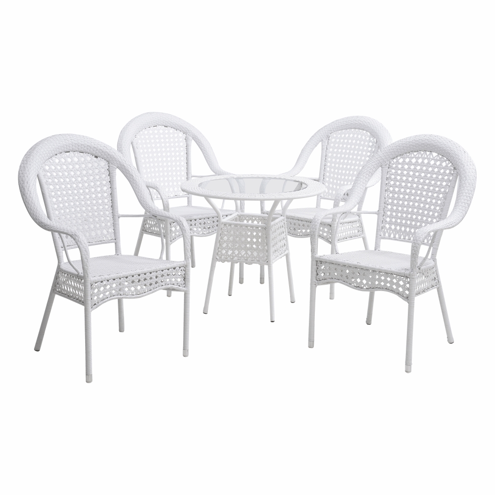 KONDELA Koven 1+4 záhradný set z umelého ratanu biela