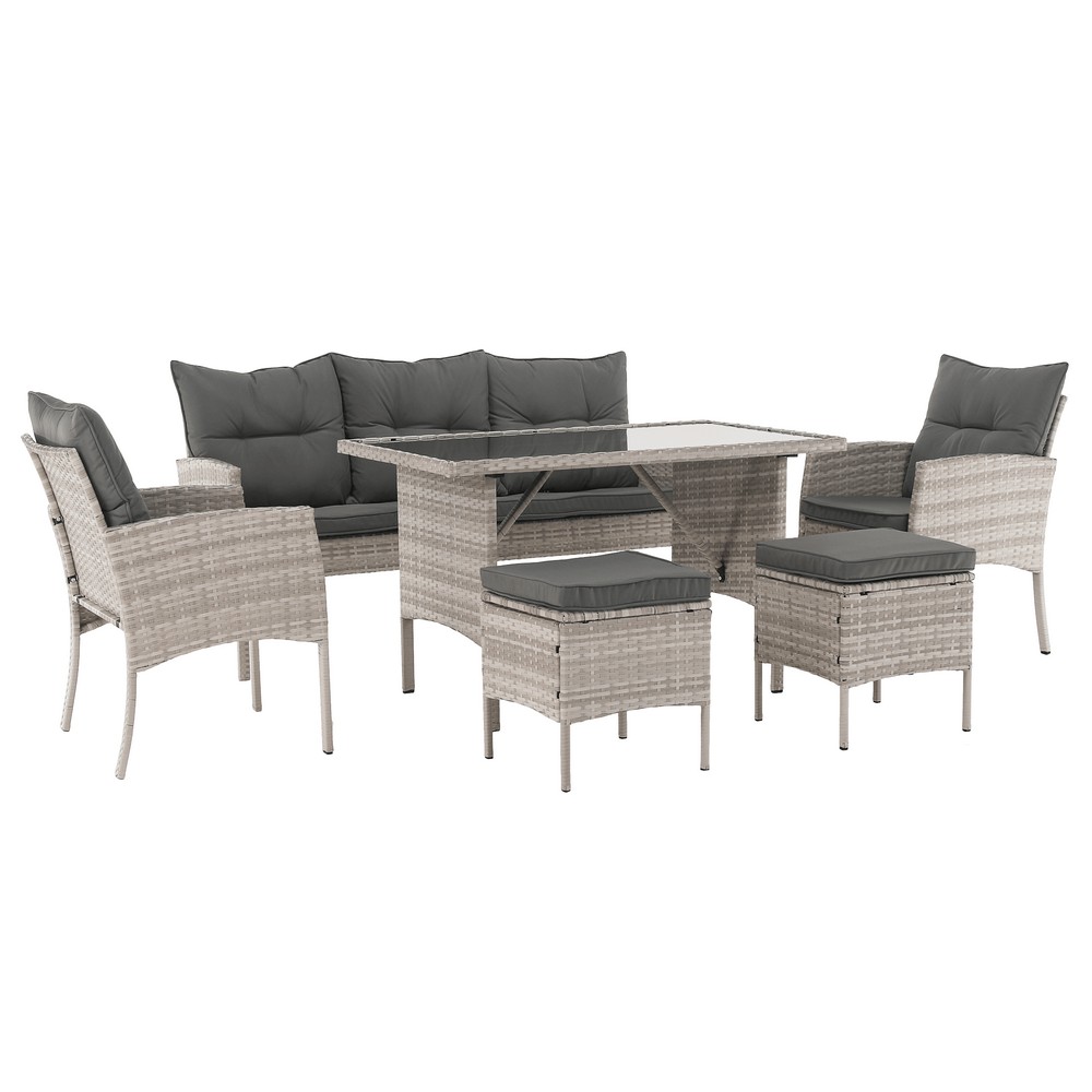 Dodajte svojej záhrade nádych elegancie s týmto moderným nábytkom z umelého ratanu LALEN, ktorý spája komfort, praktickosť a dizajn. Vyrobený je z umelého ratanu v svetlosivom farebnom prevedení. Doplnený je o vodeodolné vankúše v svetlosivej farbe…
