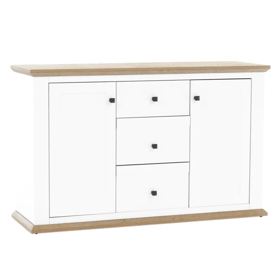 Na modernej vlne prichádza dvojdverová komoda so zásuvkami LEON MZ11. Jej rozmery sú (ŠxHxV): 140x45x87 cm. Zdobia ju skromné, ale elegantné kovové úchytky. Disponuje úložným priestorom v podobe troch zásuviek a dvoch jednodverových skriniek. Provensálsky sektorový nábytok LEON Vám pomôže zariadiť…