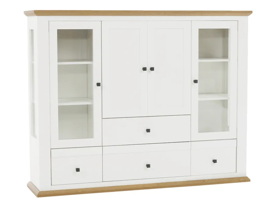 Na modernej vlne prichádza vitrína LEON MZ6. Jej rozmery sú (ŠxHxV): 165x40x130 cm. Zdobia ju skromné, ale elegantné kovové úchytky. Disponuje úložným priestorom v podobe štyroch zásuviek, dvojdverovej skrinky a dvoch jednodverových skriniek s dvierkami so sklom. Provensálsky sektorový nábytok LEON…