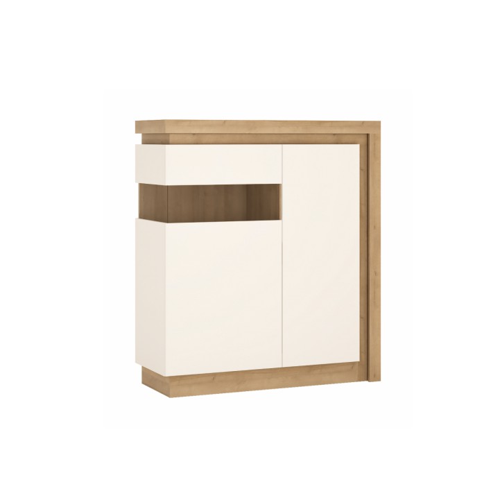 KONDELA Leonardo LYOV 4 L vitrína s osvetlením dub riviera / biela