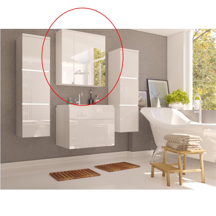 Skrinka so zrkadlom MASON WH 14 je moderná otváracia skrinka, ktorú možno kombinovať s ostatnými prvkami z modelovej rady Mason. Skrinka je vyrobená z kombinácie laminovanej DTD a MDF vo farebnom prevedení biela / biely vysoký lesk.