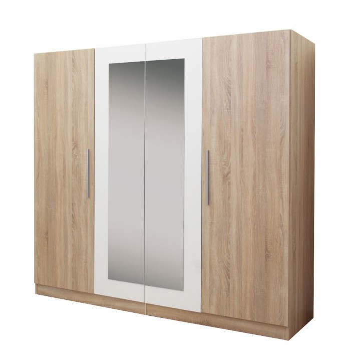 KONDELA Matisa 4D šatníková skriňa so zrkadlom dub sonoma / biela
