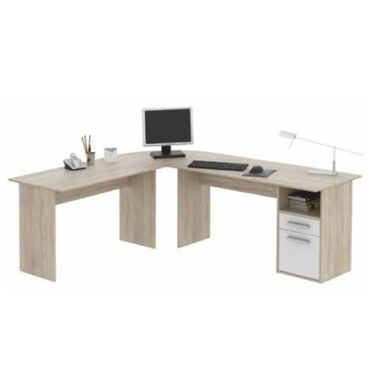 Rohový PC stôl MAURUS MA11 NEW je praktický stôl so zásuvkou, skrinkou a otvorenou poličkou, ktorý výborne zapadne do Vašej kancelárie. Stôl možno kombinovať s ostatnými prvkami z modelovej rady Maurus. Je vyrobený z laminovanej DTD s hrúbkou 16 mm vo farebnom prevedení dub sonoma / biela.