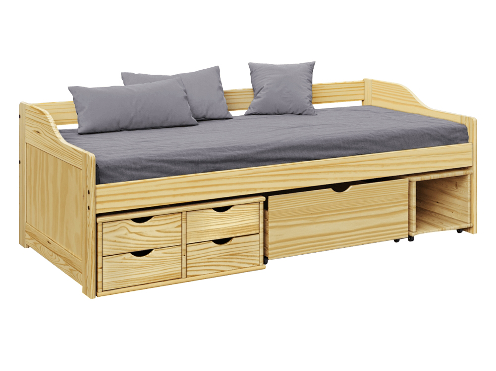 KONDELA Maxi New 90 drevená jednolôžková posteľ s úložným priestorom prírodná