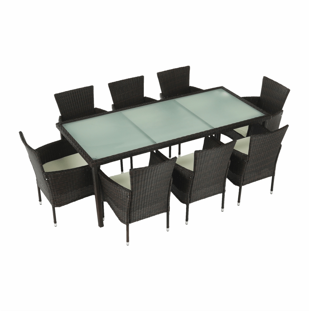 Vytvorte si miesto, kde budete môcť sedieť v príjemné letné dni so záhradným ratanovým setom MENIBOR. Set pozostáva z ôsmich kresiel a jedálenského stola. Rozmery kresla sú (ŠxHxV): 59x62x84 cm a rozmery stola sú (ŠxHxV): 200x90x74 cm. Celý set je vyrobený z umelého ratanu. Pevná a stabilná…