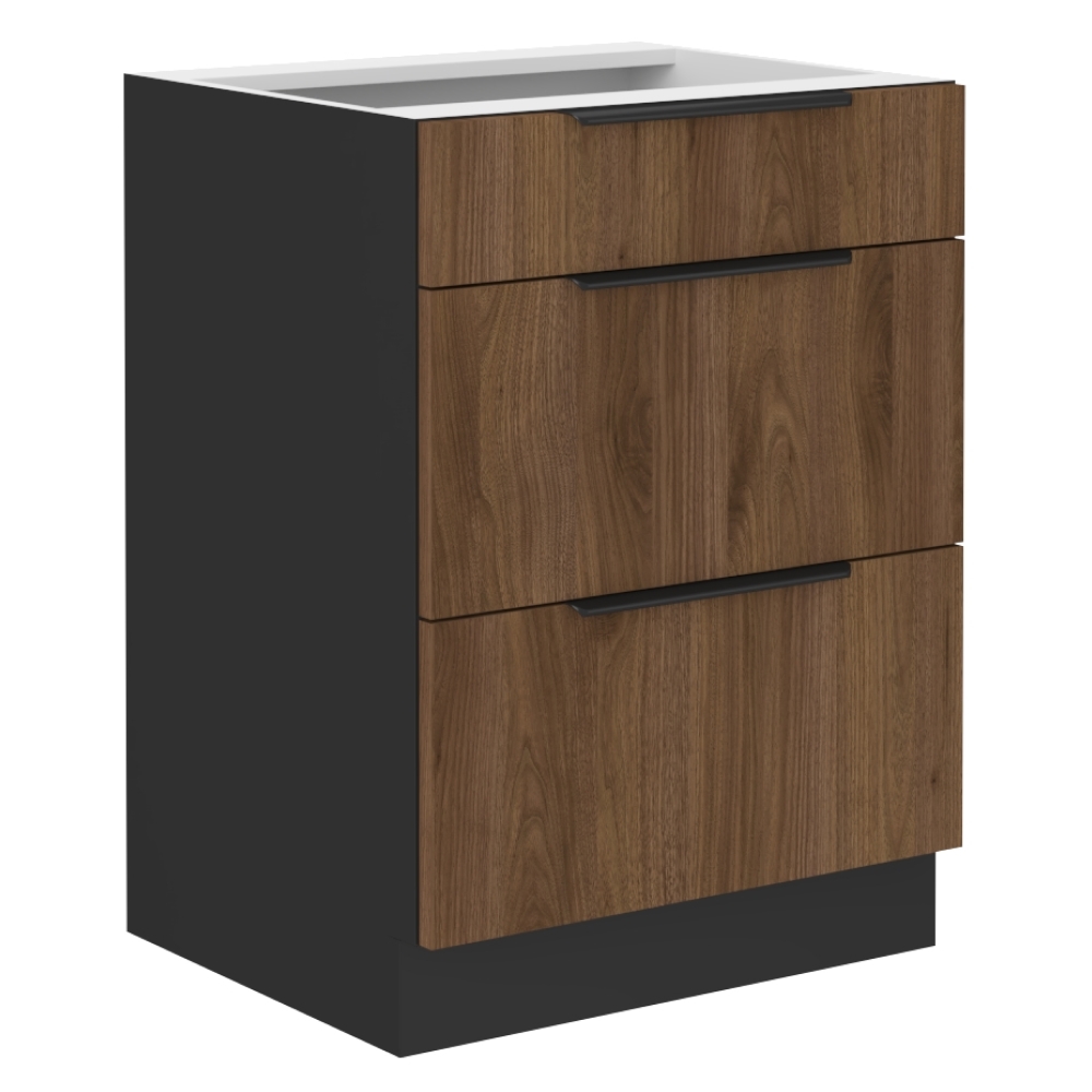 Domovská stránka » Katalóg » KONDELA Menzo 60 D 3S BB dolná kuchynská skrinka čierna / orech