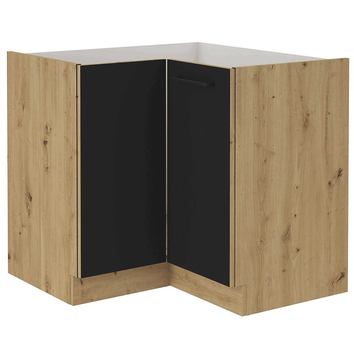 KONDELA Monro 90/90 DN 1F BB dolná rohová kuchynská skrinka čierna / dub artisan