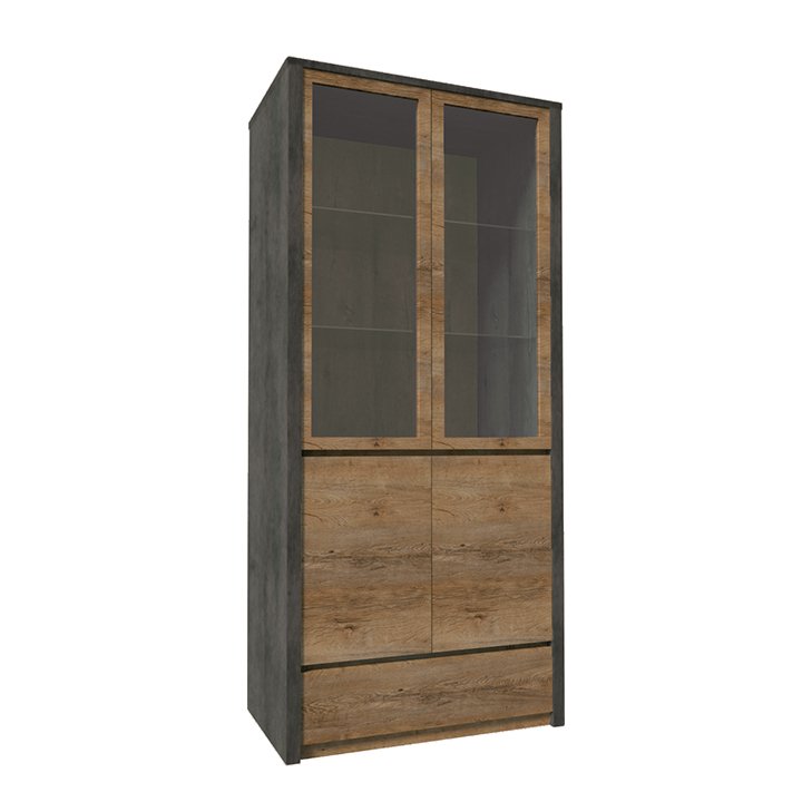 KONDELA Montana W2D vitrína dub lefkas tmavý / smooth sivý