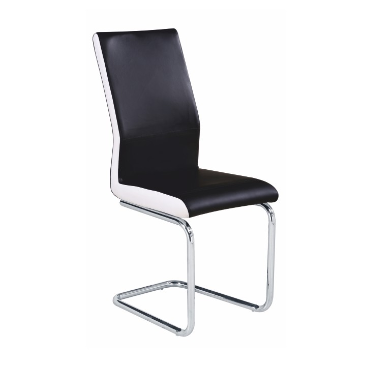 Jedálenská stolička NEANA je moderná stolička s vyšším operadlom, ktorá dodá jedinečnosť Vašej jedálni. Nohy sú vyrobené z kovu vo farbe chrómu. Sedacia časť je potiahnutá čiernou textilnou kožou PU, pričom na výber je aj v iných farebných vyhotoveniach. Operadlo je zboku potiahnuté bielou ekokožou…