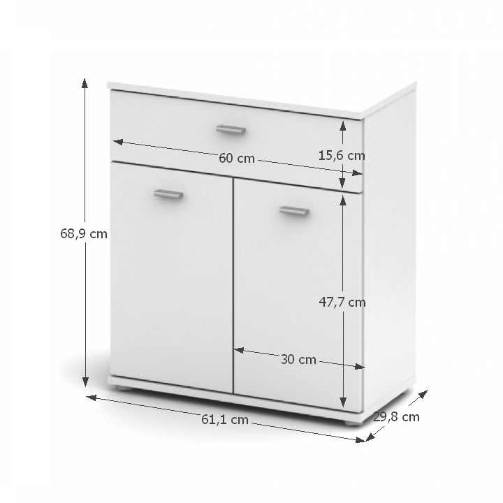 Komoda NENA 2 je dvojdverová komoda so zásuvkou. Komoda je kvalitný slovenský výrobok vyrobený z laminovanej DTD vo farbe biela, pričom na výber je aj v iných farebných vyhotoveniach.