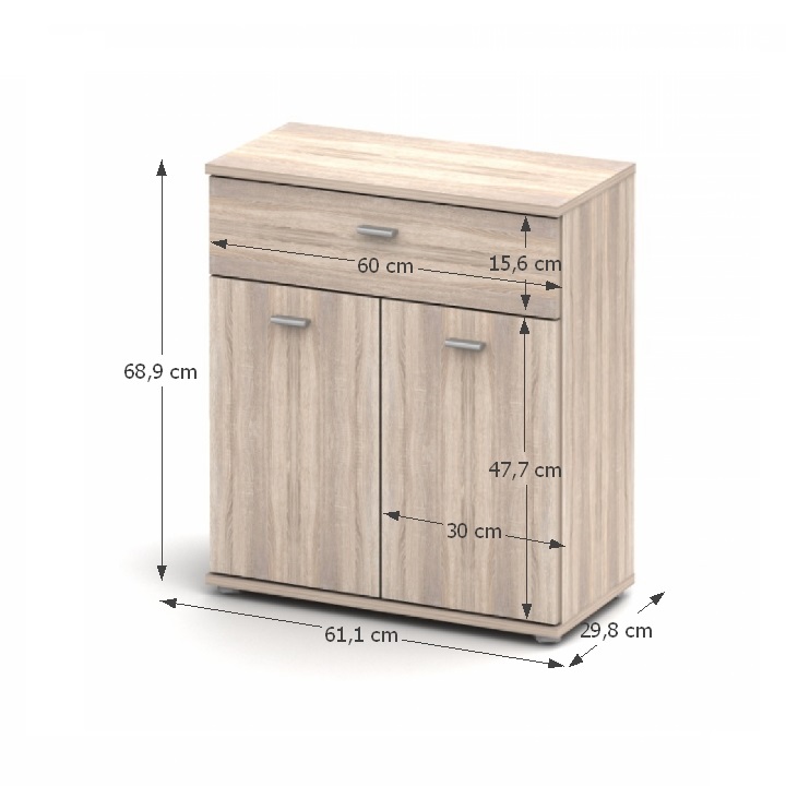 Komoda NENA 2 je dvojdverová komoda so zásuvkou. Komoda je kvalitný slovenský výrobok vyrobený z laminovanej DTD vo farbe dub sonoma, pričom na výber je aj v iných farebných vyhotoveniach.