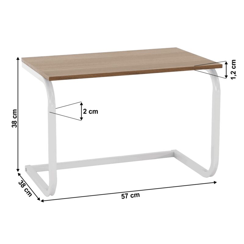 Chcete mať pri varení všetko po ruke? Odkladacia polica, ktorú by sme ocenili napríklad v malej kuchyni. Získate prídavnú policu na odloženie potrebných dóz, ako korenie, soľ alebo káva. Vyrobená z bieleho kovu a doplnená vrchnou časťou v prevedení dub. Dodávané v demonte.Hrúbka tyče: 2 cm, Hrúbka materiálu dosky: 1,2 cm
