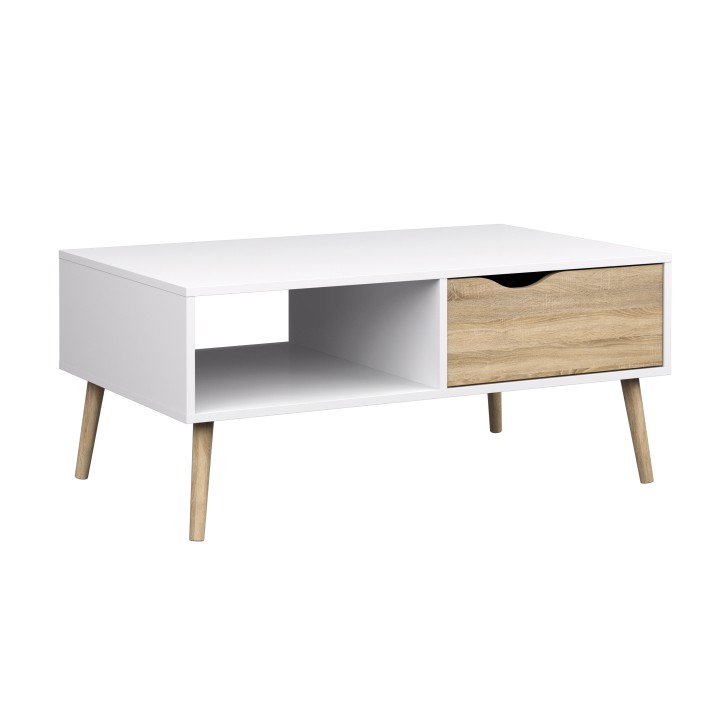 Konferenčný stolík OSLO 75384 je praktický stolík so zásuvkou a otvoreným priestorom na odkladacie časopisov, TV ovládačov a iných drobností. Stolík možno kombinovať s ostatnými prvkami z modelovej rady Oslo. Systém Oslo je retro štýlová sektorová zostava, ktorú je vhodné umiestniť do obývacej izby…