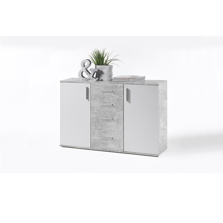 KONDELA Poppy 5 trojdielna komoda biela / betón