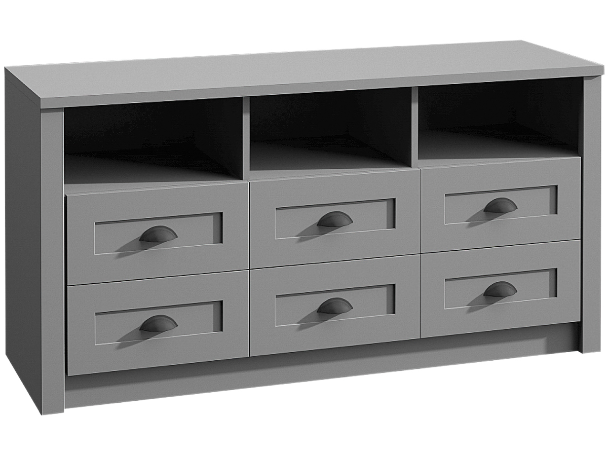 Komoda PROVANCE K6S poskytuje rôznorodý úložný priestor. Disponuje otvorenými policami a až šiestimi zásuvkami. Rozmery komody sú (ŠxHxV): 130x43x68 cm, je v nadčasovom sivom farebnom prevedení. Originálne úchytky určite nezostanú bez povšimnutia. Prineste si kúsok romantického Provensálska do…