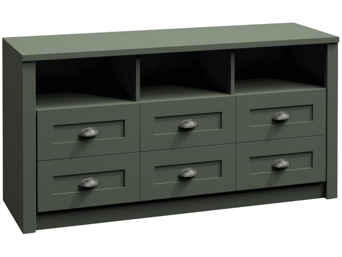 Komoda PROVANCE K6S poskytuje rôznorodý úložný priestor. Disponuje otvorenými policami a až šiestimi zásuvkami. Rozmery komody sú (ŠxHxV): 130x43x68 cm, je v upokojujúcom zelenom farebnom prevedení. Originálne úchytky určite nezostanú bez povšimnutia. Prineste si kúsok romantického Provensálska do…